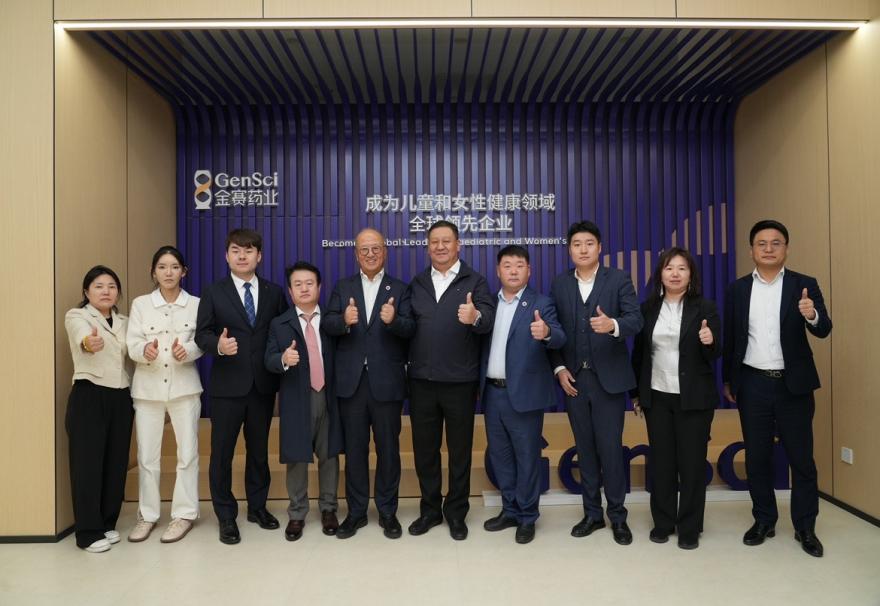 图为海晏集团郑朝辉会长率团在金赛药业参观考察