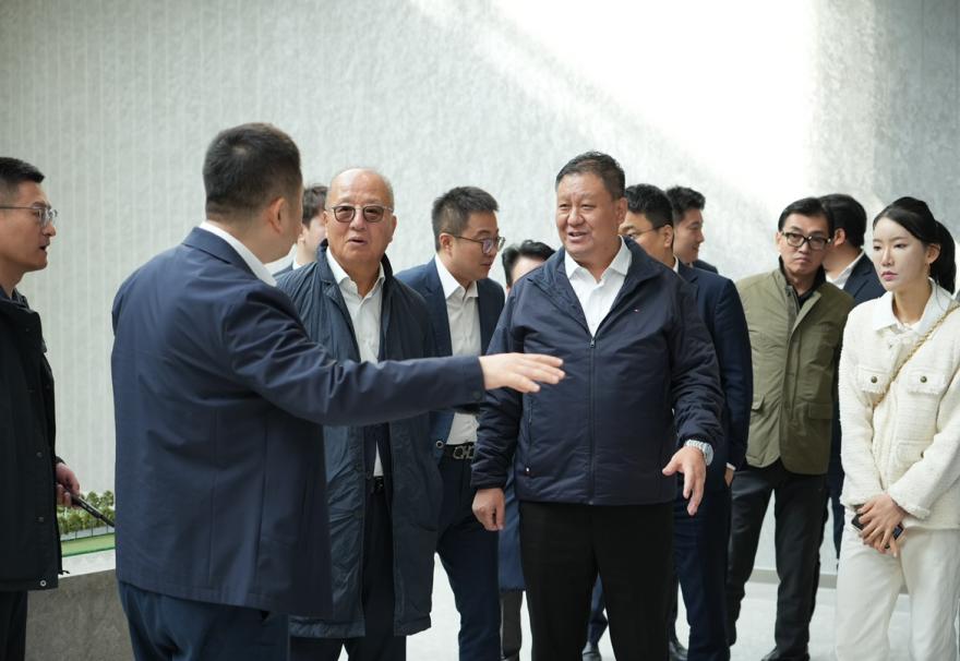 하이옌그룹 정조휘 회장이 대표단을 이끌고 시찰에 나서 관련 사업 소개를 듣고 있다.