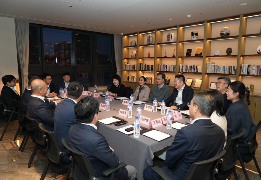 The picture shows Chairman Zheng Chaohui of Haiyan Group leading a delegation to exchange views with the accompanying personnel of Changchun New Area in the China-Korea Demonstration Zone