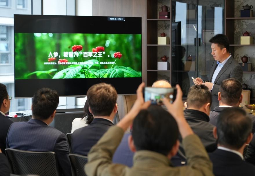 사진은 하이옌그룹 회장 정자오휘가 식물줄기세포연구센터 지린사무소를 방문한 모습.
