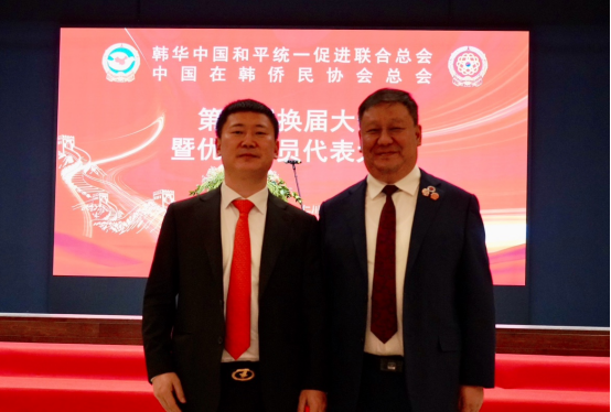 Today, the 9th General Assembly and Outstanding Member Representative Assembly of the Korean Chinese Association for the Promotion of Peaceful Reunification and the Chinese Association of Overseas Chinese in Korea (hereinafter referred to as the "Two Associations") were successfully held in South Korea, successfully completing the leadership transition. President Wang Haijun has successfully stepped down, and Mr. Yu Chengde has been elected as the new president. Mr. Zheng Chaohui, Chairman of Haiyan Group, was elected as Honorary President of the two associations, demonstrating his outstanding contributions to uniting overseas Chinese and promoting friendship between China and South Korea over the long term.
